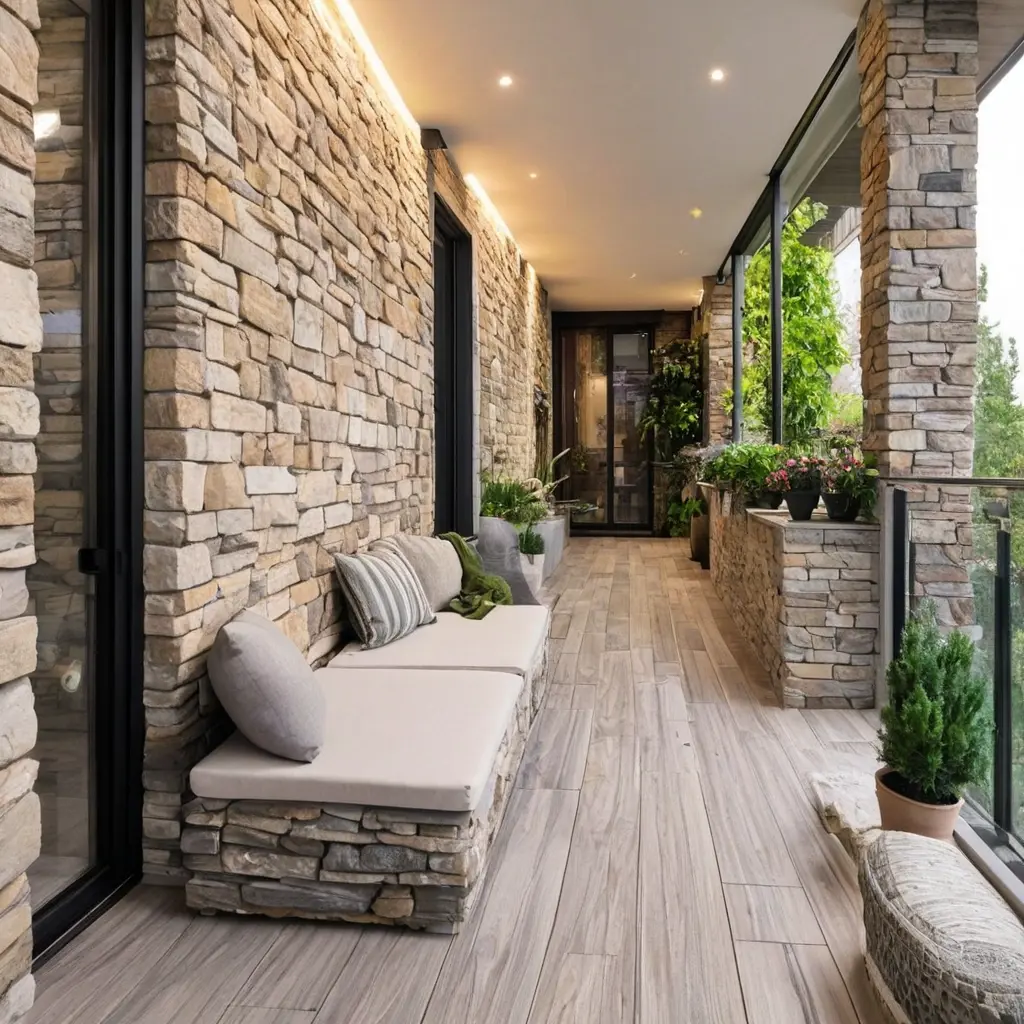 Отделка балкона декоративным камнем на маленькой площади требует продуманного подхода к визуализации пространства. Вот несколько эффективных приёмов: